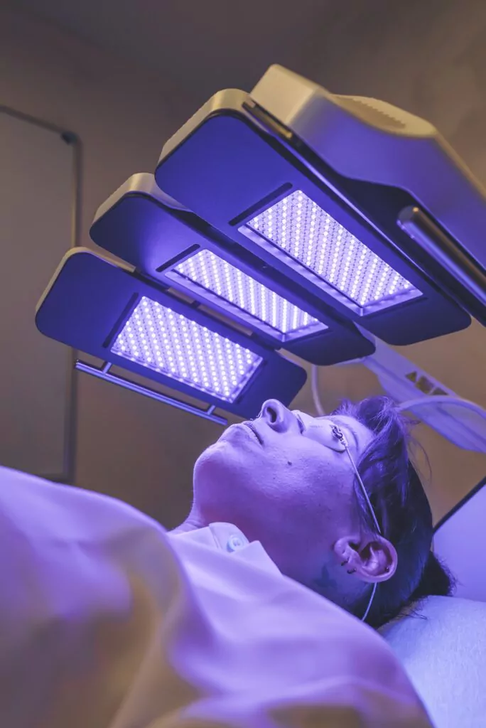 - Nabij-infrarood licht: dringt dieper door in de huid – versnelt herstel, ondersteunt wondgenezing, vermindert ontstekingen en verbetert de huidstructuur.